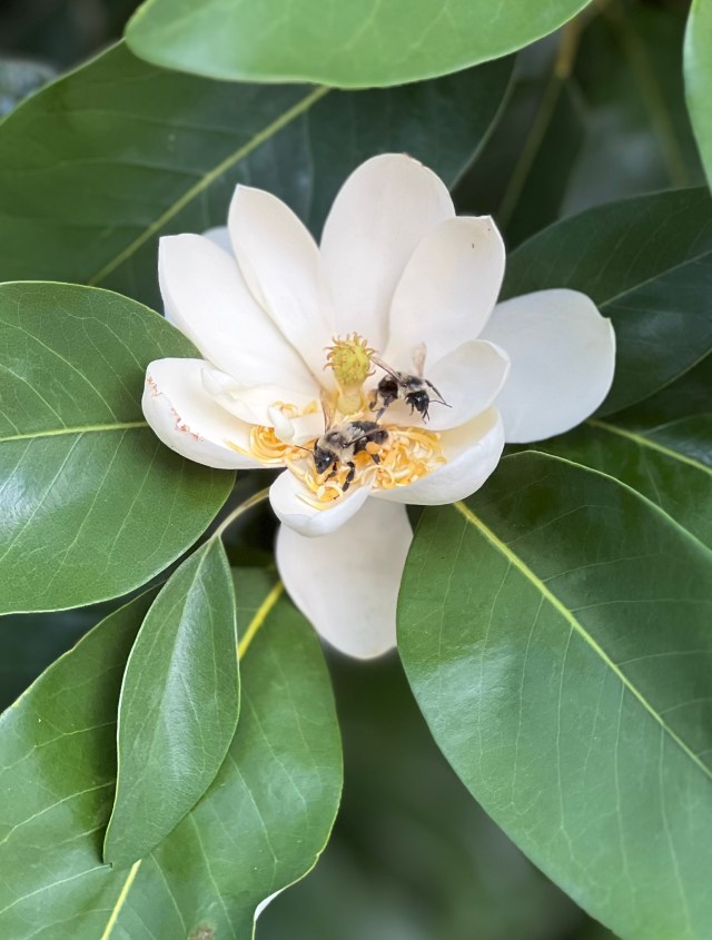 I caught these two local “employees” clocking in some serious overtime inside a Sweetbay Magnolia. There’s something deeply satisfying about the contrast between the pristine, creamy white petals and the fuzzy, pollen-dusted hustle of the bees. It’s a gentle reminder that while we’re busy staring at screens, there’s an entire workforce out there keeping the world turning (and blooming).